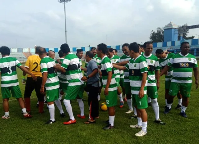 LAMONGAN-KEMPALAN: Dalam rangka menjalin silaturahmi dan bagian menyehatkan raga, para kepala desa se Kecamatan Karangbinangun Kabupten Lamongan yang tergabung dalam Asosiasi Kepala Desa (AKD) secara intens mengadakan pertandingan sepak bola, pada Minggu (19/02) kemarin di Stadion Surajaya Lamongan.