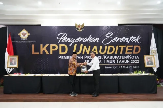 “Saya menyampaikan terima kasih atas inisiasi Kepala Perwakilan BPK RI Jatim Bapak Karyadi membangun semangat kami bahwa salah satu hal penting pengelolaan pemerintahan adalah pengelolaan keuangan. Hari ini semua kepala daerah se-Jawa Timur diundang di kantor BPK perwakilan Jawa Timur untuk penyerahan serentak LKPD unaudited,” katanya.