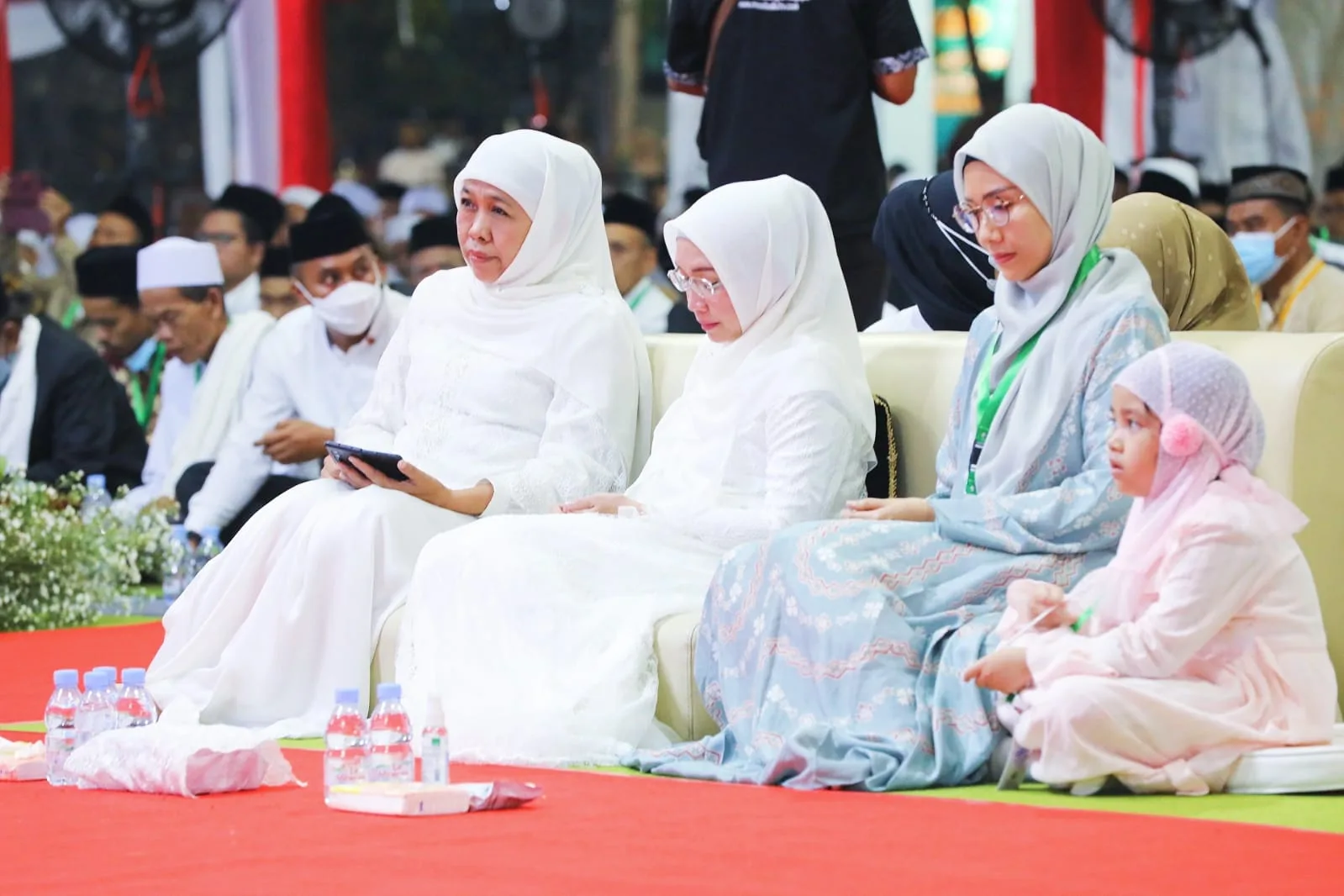 SERANG-KEMPALAN: Gubernur Jawa Timur Khofifah Indar Parawansa bersama Menkopolhukam menghadiri haul ke-130 Syekh Nawawi Al-Bantani di Aula Pesantren Annawawi yang juga merupakan kakek buyut KH. Ma’ruf Amin Wapres RI di Pesantren Tanara Jalan Kp. Kemuludan Kec. Tanara Kab. Serang, Banten, Jumat (19/5) malam.