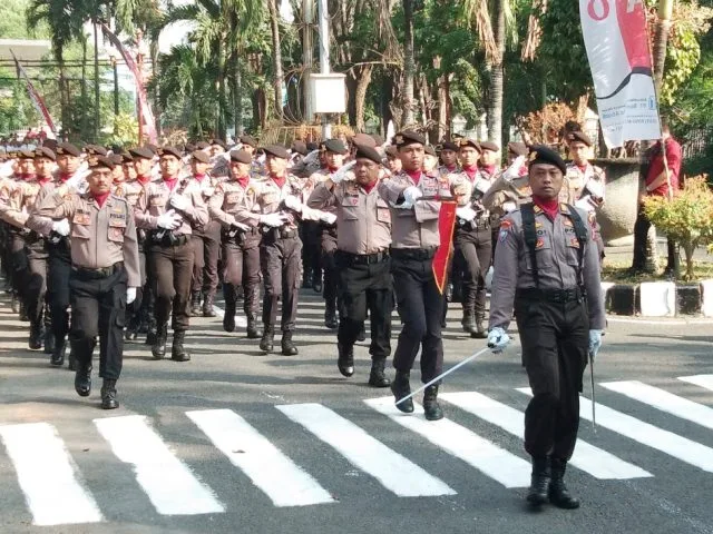 SIDOARJO-KEMPALAN: Peringatan Hari Bhayangkara ke-77 di Sidoarjo berlangsung cukup meriah. Acara yang dipusatkan di Alun-alun Sidoarjo, Sabtu (1/7/2023) pagi dipimpin langsung oleh Kapolresta Sidoarjo Kombes Pol. Kusumo Wahyu Bintoro.