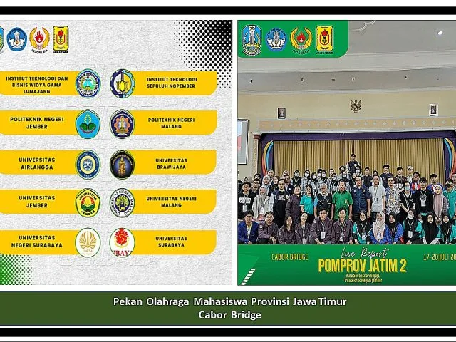 Cabor bridge Pomprov Jatim 2023 diikuti 10 Perguruan Tinggi di Jatim, yaitu Institut Teknologi dan Bisnis Widya Gama Lumajang, Institut Teknologi Sepuluh Nopember (ITS) Surabaya, Politeknik Negeri Jember, Politeknik Negeri Malang, Universitas Airlangga Surabaya, Universitas Brawijaya Malang, Universitas Jember, Universitas Negeri Malang, Universitas Negeri Surabaya, dan Universitas Surabaya (Ubaya).