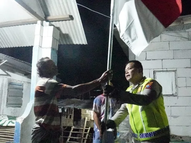 Di Dusun Kepetingan yang mayoritas warga nelayan dan petani tambak, Polresta Sidoarjo menggelar pemeriksaan dan pengobatan gratis serta Kapolresta Sidoarjo Kombes Pol. Kusumo Wahyu Bintoro membagikan sembako dan bendera merah putih door to door rumah warga.