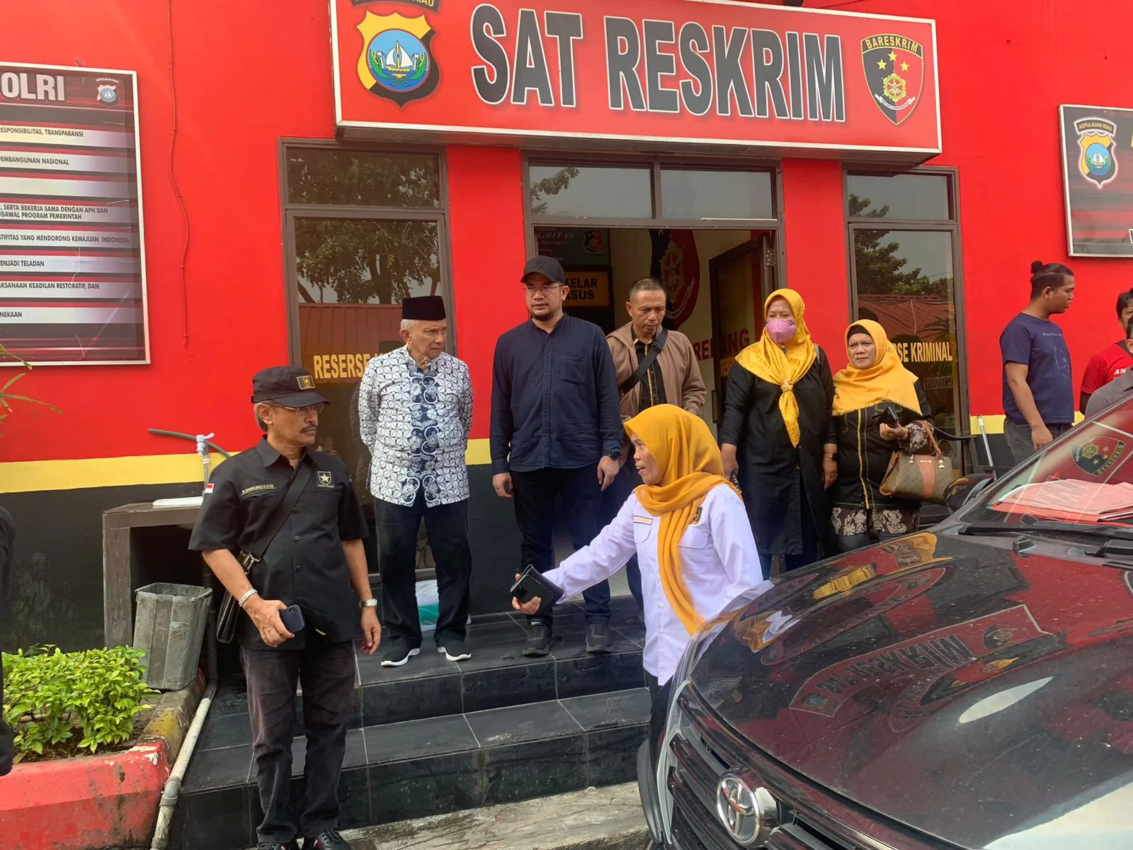 REMPANG-KEMPALAN: Ketua Majelis Syura Amien Rais dan Ketua Umum Partai Ummat Ridho Rahmadi, Kamis (5/10/2023), mengunjungi kantor polisi Rempang untuk menjadi penjamin kebebasan para tahanan yang ditangkap polisi.
