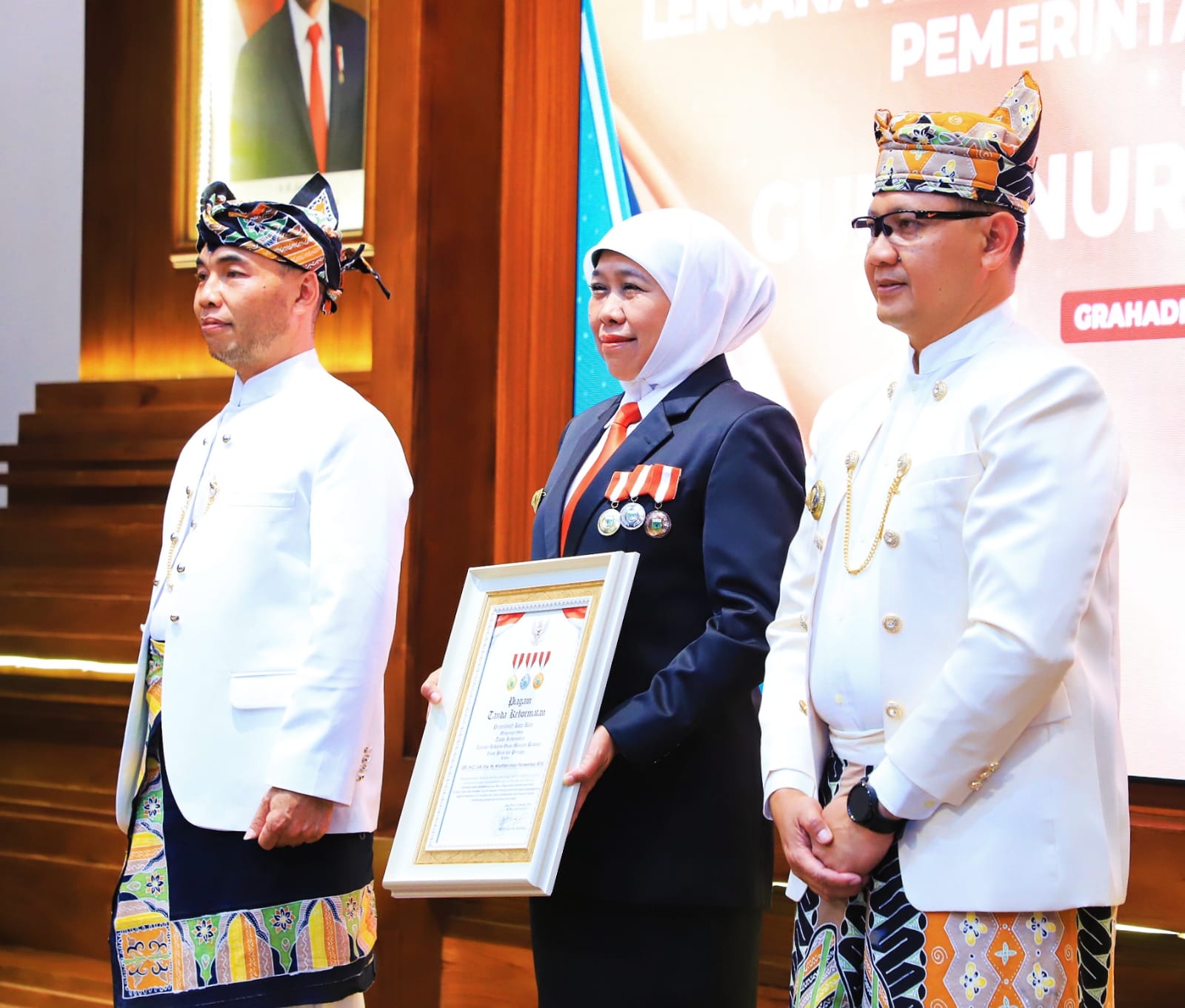 Dukung Kemajuan Kota Batu, Khofifah Terima Lencana Hakaryo Guno Mamayu Bawono