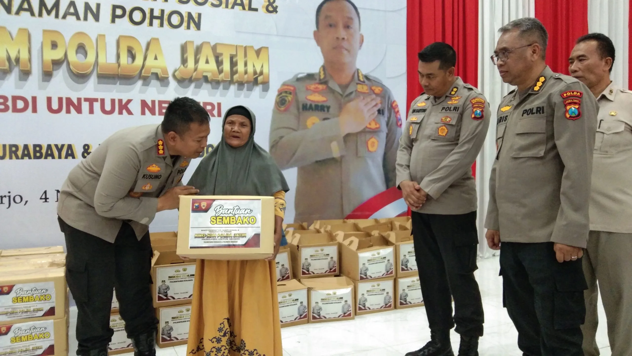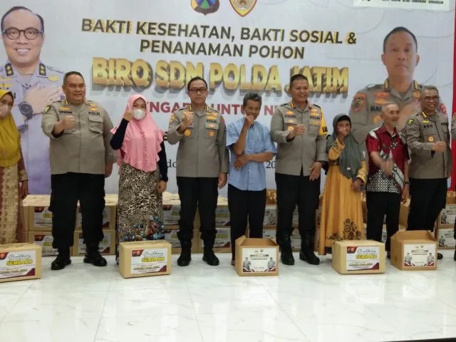 Bakti sosial dan bakti kesehatan tersebut dihadiri Karo SDM Polda Jatim Kombes Pol. Harry Kurniawan, Kapolresta Sidoarjo, PJU Polda Jatim dan Polresta Sidoarjo.