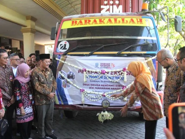 Dalam kesempatan ini, Gubernur Khofifah juga berkesempatan melepas ekspor produk dari 7 pelaku usaha di Jatim dengan total nilai Rp 3,62 miliar atau USD 235,32 ribu dengan negara tujuan Asia Timur, Timur Tengah, hingga Eropa.