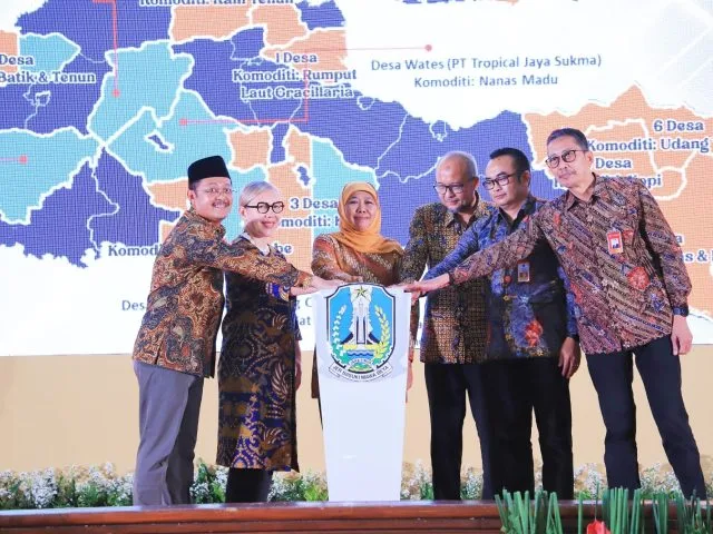 Didampingi Ka. Disperindag Prov. Jatim Iwan, Dirut Bank Jatim Busrul Iman, dan Direktur Pelaksana Bidang Pengembangan Bisnis LPEI Maqin U Nurhadi, peresmian dilakukan Gubernur Khofifah dengan penyerahan rompi kepada Bumdes Langgeng Lestari Pacitan, Bumdes Sejahtera Punjung Pacitan, dan CV Dua Putri Sholehah Probolinggo.