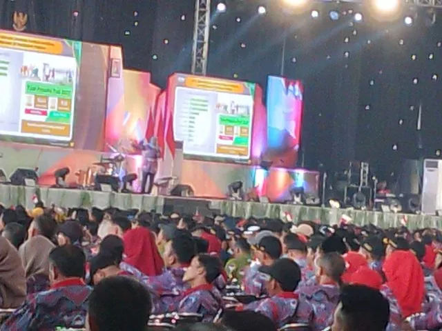 Tampak hadir dalam kesempatan tersebut Kepala DPMD Jatim Budy Sarwoto, para kepala DPMD kabupaten/kota Jatim se-Jatim, para kepala bidang pemerintah desa kabupaten/kota se-Jatim, dan ribuan anggota PPDI se-Jatim. (Dwi Arifin)