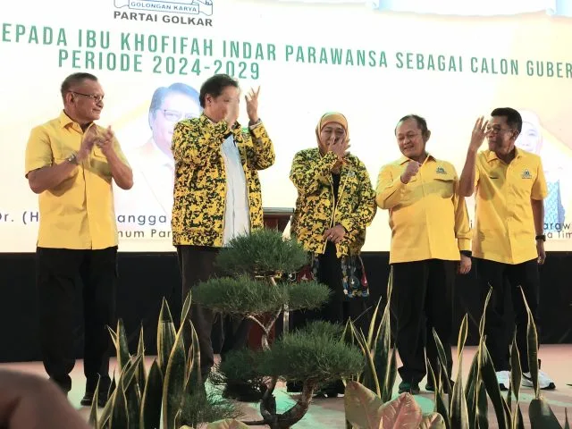 SURABAYA-KEMPALAN: Khofifah Indar Parawansa kembali mendapat tambahan rekomendasi untuk maju sebagai calon gubernur (cawagub) di Pilgub Jatim 2024. Kali ini rekomendasi tersebut diberikan Partai Golkar. Sebelumya, Khofifah telah megantongi rekomendasi dari Partai Amanat Nasional (PAN), Partai Gerindra, dan Partai Demokrat.