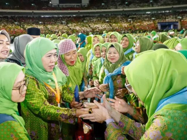 JAKARTA-KEMPALAN: Ketua Umum Pimpinan Pusat Muslimat NU Hj Khofifah Indar Parawansa menegaskan bahwa suara NU adalah suara Muslimat NU. Hal tersebut ia sampaikan saat memberikan sambutan pada peringatan Harlah Ke-78 Muslimat NU di Stadion Utama Gelora Bung Karno, Jakarta, Sabtu (20/1).