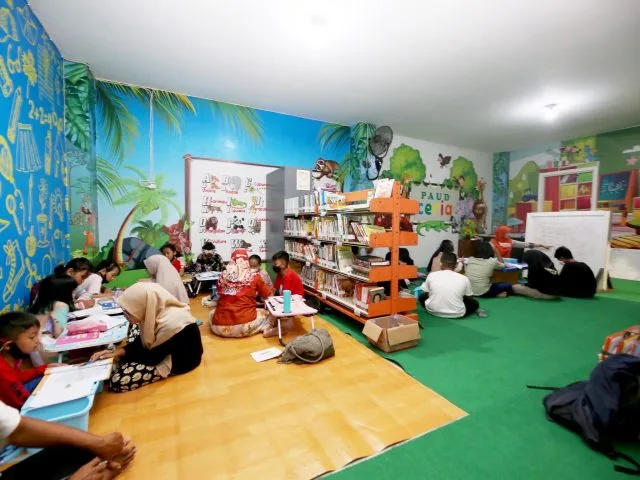 SURABAYA-KEMPALAN: Pemkot Surabaya melalui Dinas Pendidikan (Dispendik) Kota Surabaya berkomitmen penuh dalam memberikan fasilitas, serta pendampingan kepada anak-anak dalam belajar dan mengerjakan tugas-tugas sekolah melalui program Sinau dan Ngaji Bareng di Balai RW.