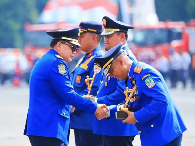 SURABAYA-KEMPALAN: Pj. Gubernur Jawa Timur Adhy Karyono mengapresiasi peran seluruh personel Pemadam Kebakaran (Damkar) dan Penyelamatan yang telah berkontrobusi mewujudkan keamanan dan kondusifitas di Jatim. Pasalnya, mereka adalah orang-orang yang penuh dedikasi membaktikan dirinya demi menyelamatkan orang lain.