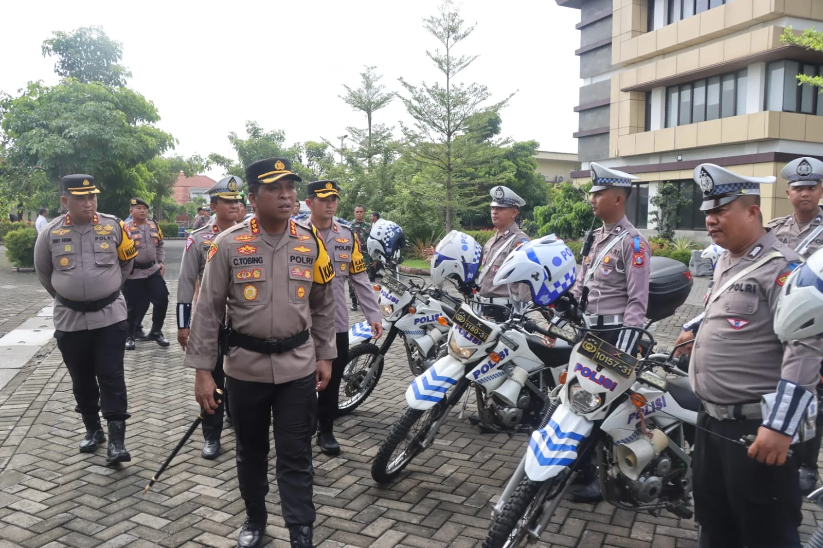 Kapolresta Sidoarjo Kombes. Pol. Christian Tobing, memimpin apel gelar pasukan ditandai kesiapan pelaksanaan Operasi Keselamatan Semeru 2024, Sabtu (2/3/2024), di Lapangan Mapolresta Sidoarjo yang melibatkan sebanyak 500 personel anggota Polri, TNI, Dinas Perhubungan, Satpol PP, Senkom, Pramuka dan stake holder terkait lainnya.