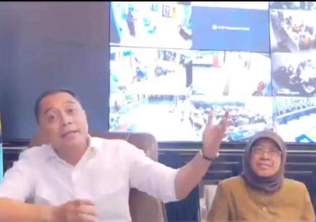 SURABAYA-KEMPALAN: Wali Kota Surabaya Eri Cahyadi memberi pengarahan kepada seluruh pegawai di lingkup Pemerintah Kota (Pemkot) Surabaya, Senin (25/3). Pengarahan diikuti seluruh Aparatur Sipil Negara (ASN) maupun tenaga Non-ASN atau outsourcing melalui virtual zoom.