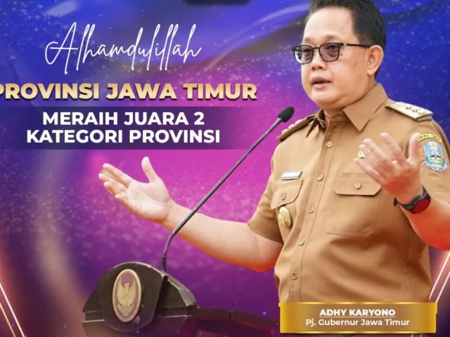 Penghargaan berupa medali, piagam, dan piala tersebut diserahkan oleh Wamendagri John Wempi Wetipo kepada Penjabat (Pj) Gubernur Jawa Timur Adhy Karyono yang diwakili Asisten Pemerintahan dan Kesra Sekdaprov Jatim Benny Sampirwanto di Hotel Bidakara, Jakarta, Rabu (24/4).