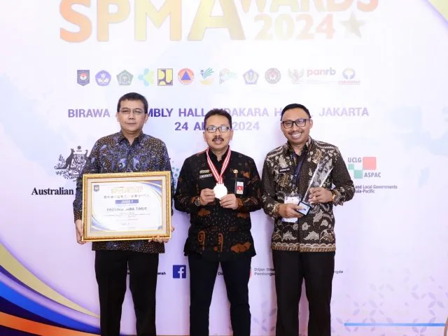 SURABAYA-KEMPALAN: Provinsi Jawa Timur meraih penghargaan Standar Pelayanan Minimal (SPM) Awards Tahun 2024 Kategori Provinsi Berkinerja Terbaik Pelaksanaan Penerapan SPM Tahun Anggaran 2023 dari Kementrian Dalam Negeri (Kemendagri).