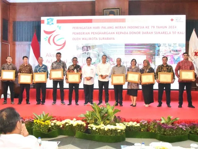 Pemberian penghargaan itu dilakukan bertepatan dengan peringatan hari Palang Merah Indonesia (PMI) ke-79. Dalam sambutannya Wali Kota Surabaya Eri Cahyadi mengucapkan terima kasih kepada seluruh masyarakat yang secara sukarela mendonorkan darah secara rutin.