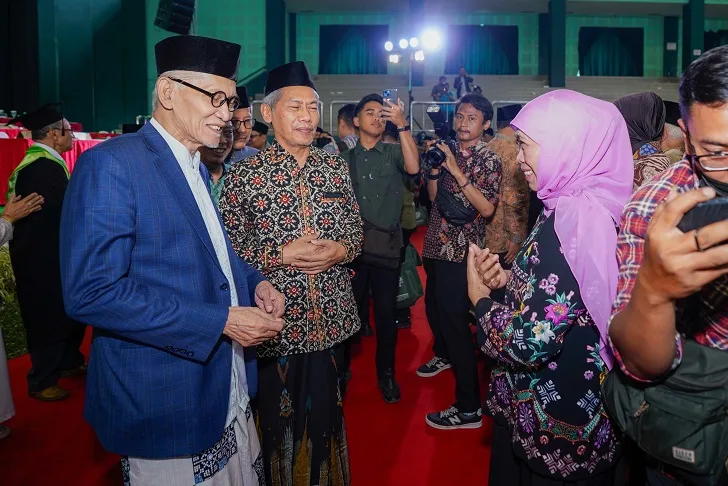 SURABAYA-Calon Gubernur Jawa Timur nomor urut 2 Khofifah Indar Parawansa memilih mengisi hari pertama kampanye dengan menghadiri pengukuhan Dr (HC) bagi KH Zulfa Mustofa dan Drs. KH. Muhammad Naser Dip.Tal di Universitas Islam Negeri Sunan Ampel (Uinsa) Surabaya, Rabu (25/9/2024).