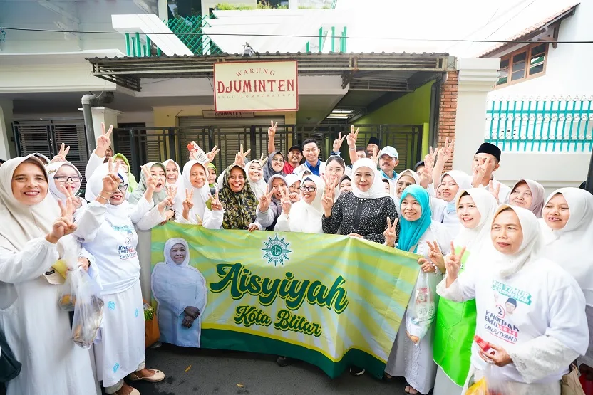 BLITAR-Calon Gubernur Jawa Timur Nomor Urut 2 Khofifah Indar Parawansa mengawali kampanye di Blitar dengan blusukan menyapa pedagang di Pasar Templek, Kota Blitar, Sabtu pagi (12/10/2024).