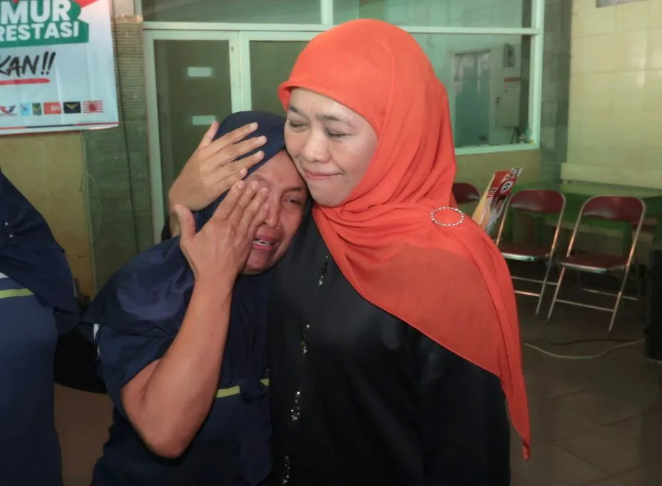 “Semoga semua sehat. Sehat lahirnya, sehat batinnya, sehat dompetnya,” kata Khofifah disambut amin oleh ribuan pekerja yang hadir.