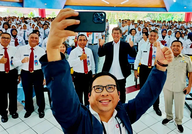 Dengan seragam militer itu Bahlil memang jadi pusat perhatian. Kamera banyak mengarah padanya. Anak buahnya yang sering operasi siluman di lapangan tentu bangga karena bosnya pakai baju tentara.