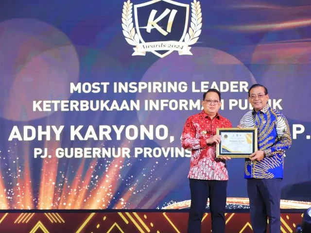 Penghargaan tersebut diberikan langsung oleh Ketua Komisi Informasi Pusat Donny Yoesgiantoro kepada Pj. Gubernur Adhy.