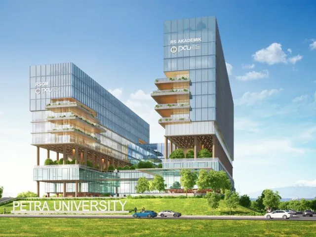 Kini ia lagi merancang rumah sakit Universitas Kristen Petra Surabaya. Rancangannya sudah selesai. Lihatlah di mana Adi “menyembunyikan” lapangan parkirnya: di balik rumput hijau di bawah bangunan tinggi itu.