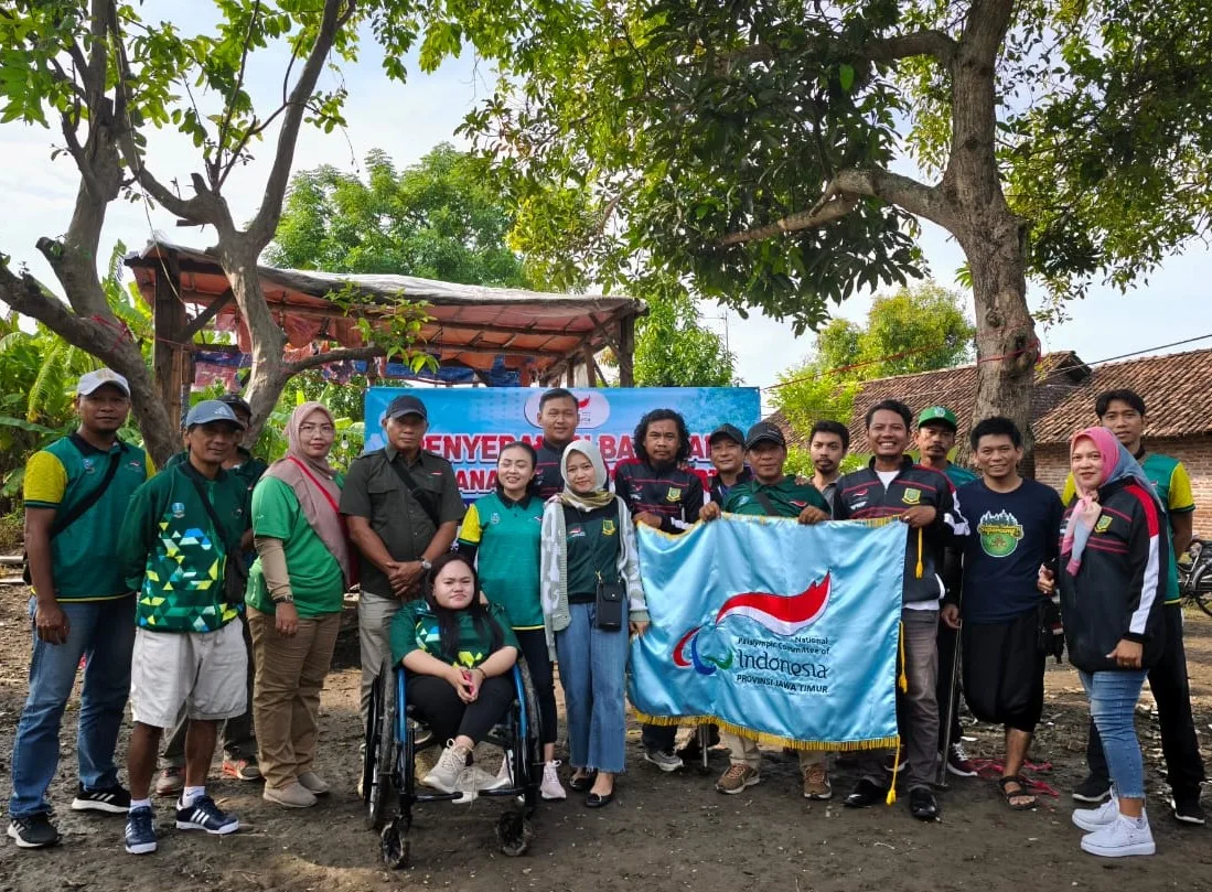 SURABAYA-KEMPALAN : Pengurus National Paralympic Committee Indonesia (NPCI) Provinsi Jawa Timur memberikan 200 paket sembako atau senilai Rp30 juta bagi warga terdampak banjir di Kota Mojokerto.