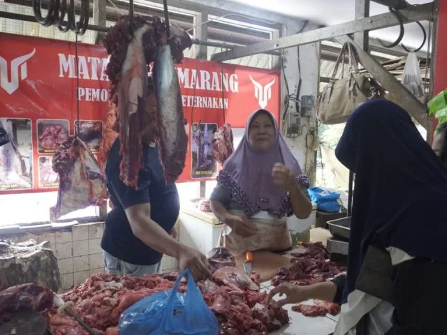 Kempalan melanjutkan liputan ke lantai dua, dimana penjual daging berada. Harga daging saat ini sepertinya tidak mengalami kenaikan. “Untuk daging, sudah dua tahun ini harganya stabil mas. Per Kg nya 130 ribu untuk jenis daging yang super. Dulu-dulu itu, setiap tahunnya harga daging naik 2-3 kali setiap tahunnya, namun sekarang, alhamdulillah stabil”,ucap bu Ndarin ketika menjawab beberapa pertanyaan kempalan.
