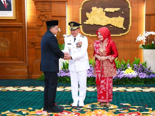 SURABAYA-KEMPALAN: Penjabat (Pj) Aries Agung Paewai kembali menjabat Pj. Walikota Batu. Dia dilantik Pj.Gubenur Jatim Adhy Karyono di Gedung Negara Grahadi Surabaya, Jumat (10/1). Pelantikan dilakukan berdasarkan Kepmendagri Nomor 100.2.1.3-50 Tahun 2025 tertanggal 10 Januari 2025.