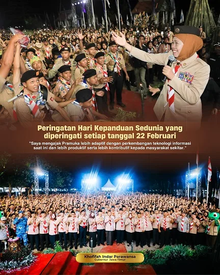 MAGELANG– Di peringatan Hari Kepanduan Sedunia yang diperingati setiap tanggal 22 Februari, Gubernur Jawa Timur Khofifah Indar Parawansa mengajak Pramuka lebih adaptif dengan perkembangan teknologi informasi saat ini dan lebih produktif serta lebih kontributif kepada masyarakat sekitar.