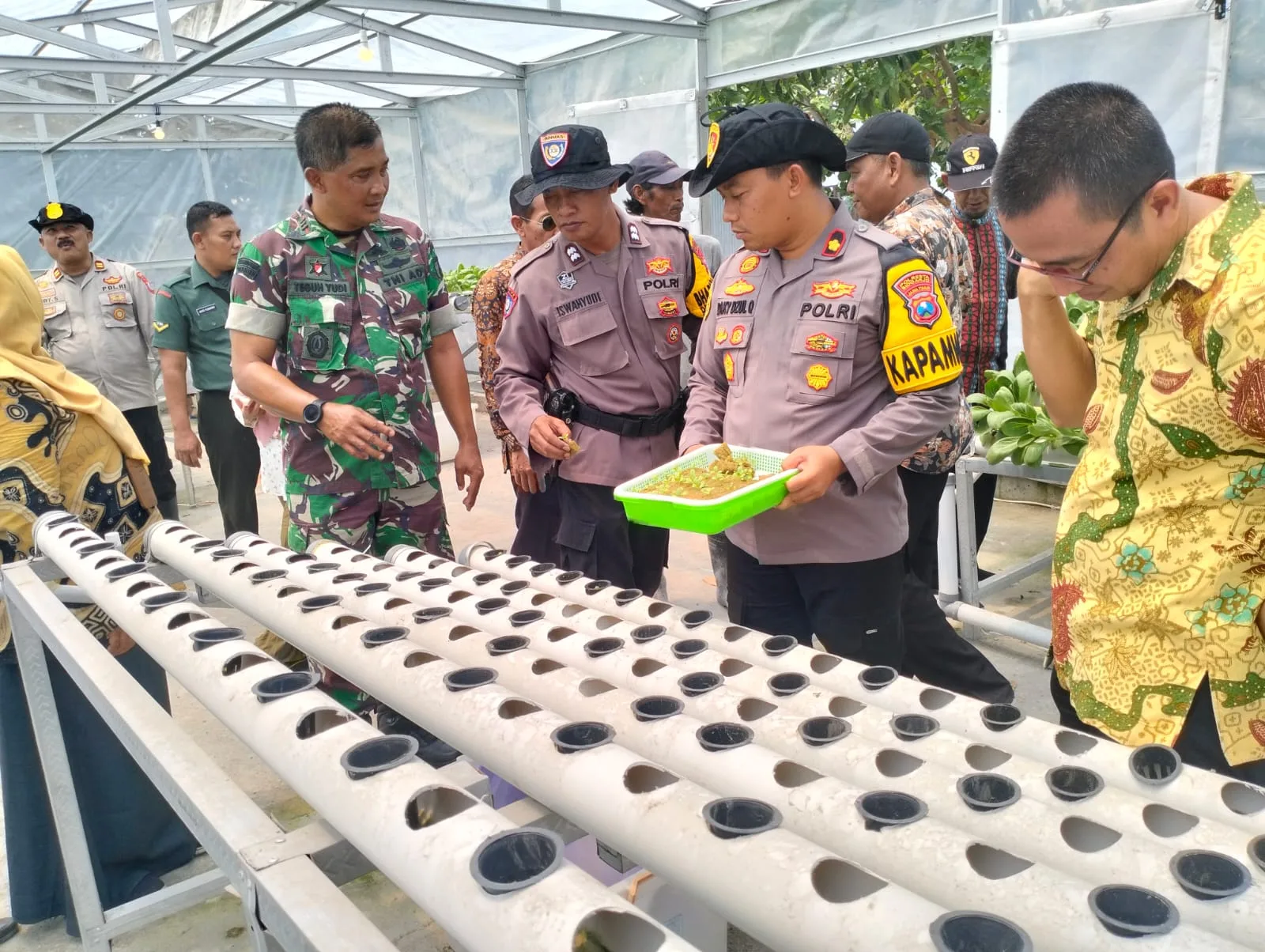 SIDOARJO-KEMPALAN: Dalam rangka mewujudkan swasembada pangan secara mandiri, Polisi Sidoarjo lakukan pendampingan terhadap warga. Terutama yang memanfaatkan lahannya menjadi produktif.