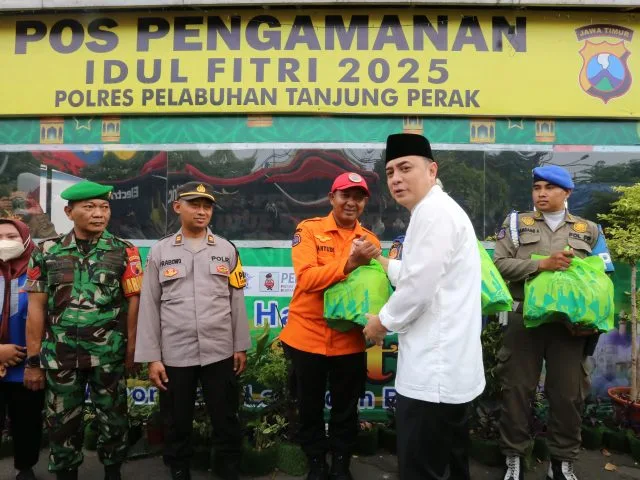 Dalam kesempatan ini, Forkopimda Surabaya juga membagikan paket sembako kepada para petugas gabungan yang bertugas di Pos PAM. Paket sembako ini sebagai bentuk apresiasi atas dedikasi mereka dalam menjaga keamanan selama Lebaran.