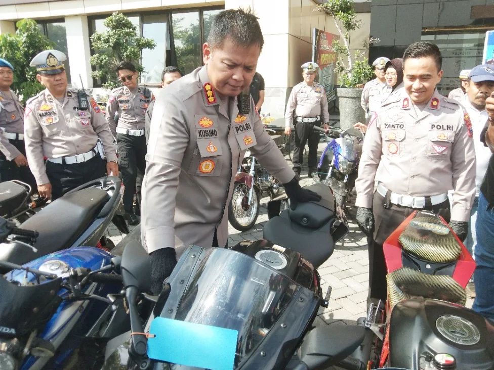 Dipimpin Kapolsek Krian Kompol I Gede Putu Atma Giri bersama unit Opsnal, didapatkan sejumlah barang bukti satu buah sangkar ayam, 16 ayam jago dan 24 motor.