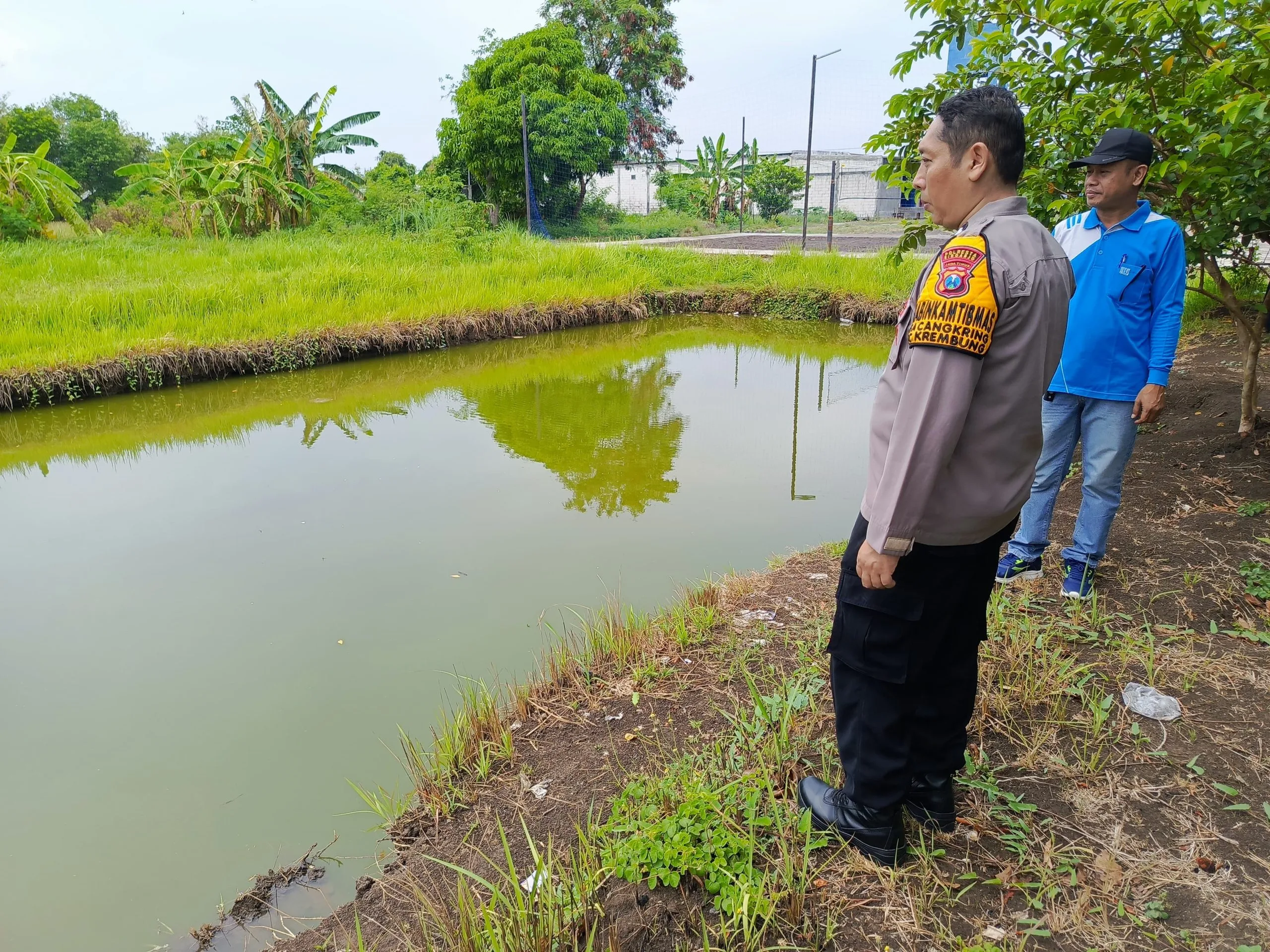 SIDOARJO-KEMPALAN: Mendukung Program Asta Cita Presiden Prabowo Subianto dalam ketahanan pangan nasional, Polsek Krembung melalui Kanit Binmas Aiptu Adin dan Bhabinkamtibmas Aiptu Agus Yan melaksanakan giat pengecekan serta pendampingan budidaya ikan lele di Desa Cangkring, Kecamatan Krembung, Kabupaten Sidoarjo, Selasa (20/5/2025).