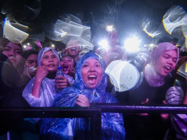 Meskipun diguyur hujan, semangat penonton tidak surut. Konser yang menampilkan grup musik pop jawa “Guyon Waton” sebagai bintang utama ini tetap berlangsung meriah.