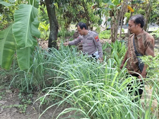 SIDOARJO-KEMPALAN: Bhabinkamtibmas Polsek Wonoayu Polresta Sidoarjo Bripka Aris Firdiansyah melaksanakan kegiatan monitoring tanaman kangkung yang ditanam oleh warga binaan di Desa Sumberejo, Kecamatan Wonoayu, Kabupaten Sidoarjo, Selasa (3/6/2025) sebagai upaya mendukung program ketahanan pangan nasional dan mewujudkan swasembada pangan di tingkat lokal.