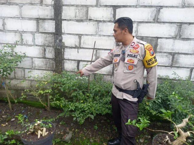 SIDOARJO-KEMPALAN: Upaya warga Desa Kenongo, Kecamatan Tulangan, Kabupaten Sidoarjo, dalam mengubah lahan kosong menjadi lahan produktif mendapat dukungan penuh dari aparat kepolisian. Bhabinkamtibmas Desa Kenongo Polsek Tulangan, Aiptu Suyanto, turun langsung ke lapangan untuk memberikan pendampingan kepada para petani pisang, Senin (9/6/2025).