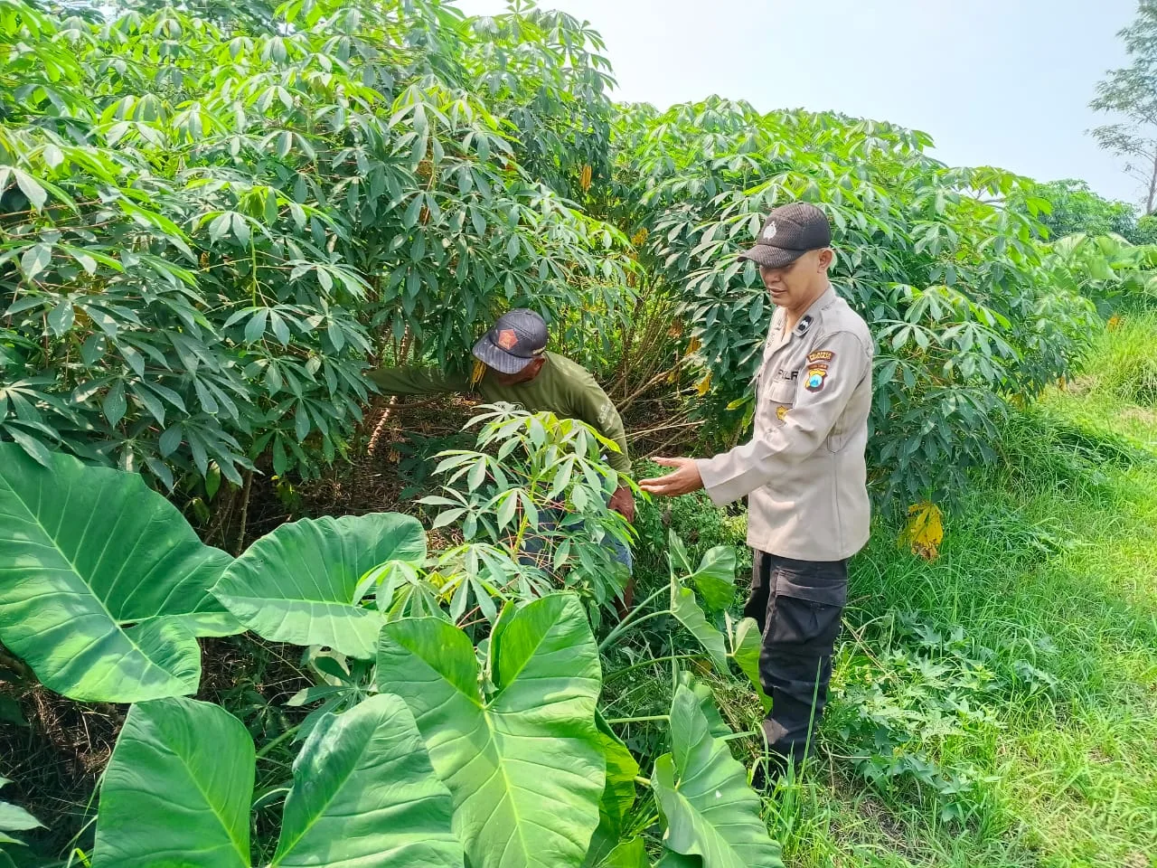 SIDOARJO-KEMPALAN: Untuk mendukung program Asta Cita Presiden Prabowo Subianto dan arahan Kapolresta Sidoarjo Kombes Pol Christian di sektor Swasembada Pangan dan memperkuat ketahanan pangan di wilayah Kabupaten Sidoarjo, Kanit Binmas Polsek Krembung, Aiptu Adin, melakukan pengecekan dan pendampingan secara langsung terhadap lahan pekarangan di Desa Lemujut, Kecamatan Krembung, Senin (9/6/2025).