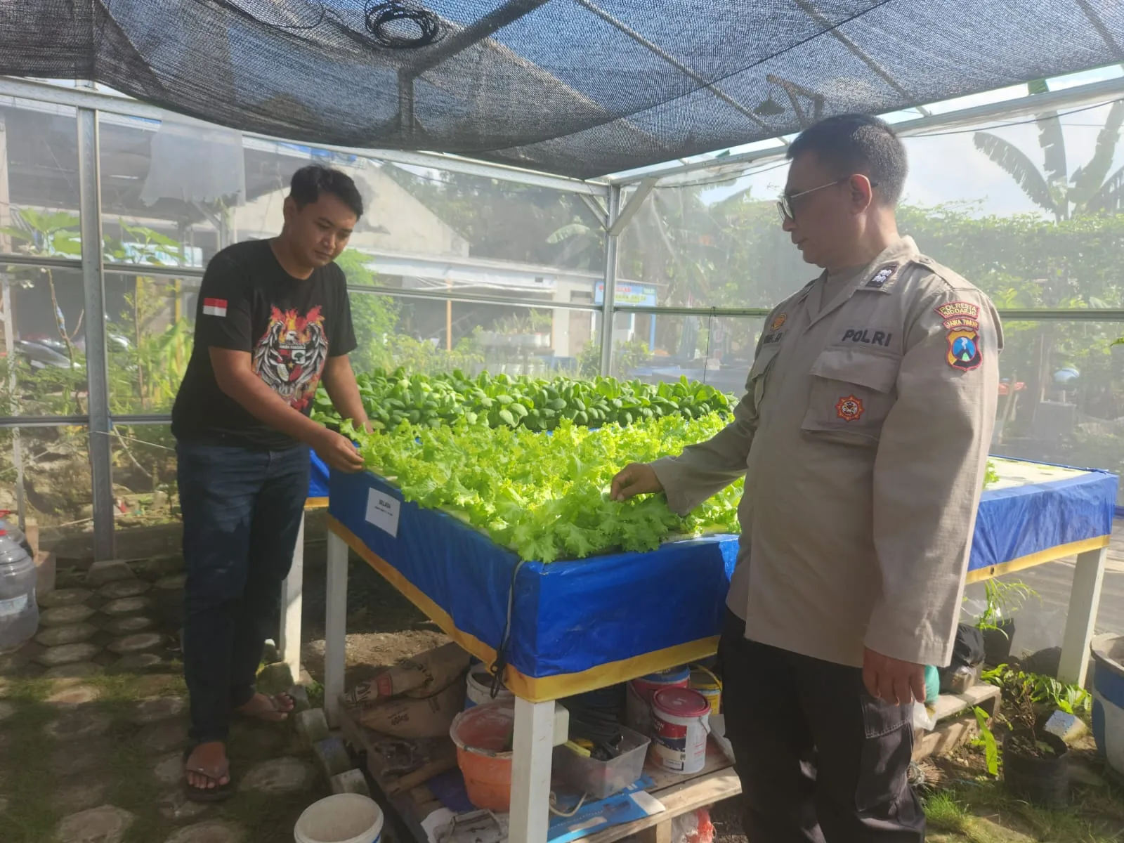SIDOARJO-KEMPALAN: Upaya memperkuat program ketahanan pangan Polresta Sidoarjo Polda Jawa Timur terus digencarkan dan sesuai arahan Kapolresta Sidoarjo Kombes Pol Christian Tobing. Minggu (15/6/2025), Bhabinkamtibmas Desa Tebel, Polsek Gedangan Aiptu Agung, bersama perangkat desa dan para petani setempat melaksanakan giat peninjauan dan pengecekan perkembangan budidaya buah dan sayuran secara hidroponik di lahan yang terletak di Desa Tebel, Kecamatan Gedangan, Kabupaten Sidoarjo.