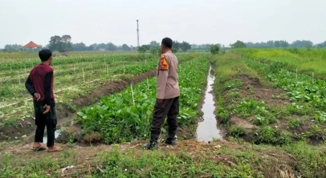 SIDOARJO-KEMPALAN: Dalam upaya mendukung program ketahanan pangan yang dicanangkan Polresta Sidoarjo, Bhabinkamtibmas Polsek Wonoayu Polresta Sidoarjo, Brigpol Garlis melakukan kunjungan ke lokasi panen sawi di wilayah binaannya di Desa Mojorangagung, Kecamatan Wonoayu, Kabupaten Sidoarjo, pada Selasa (24/6/2025).