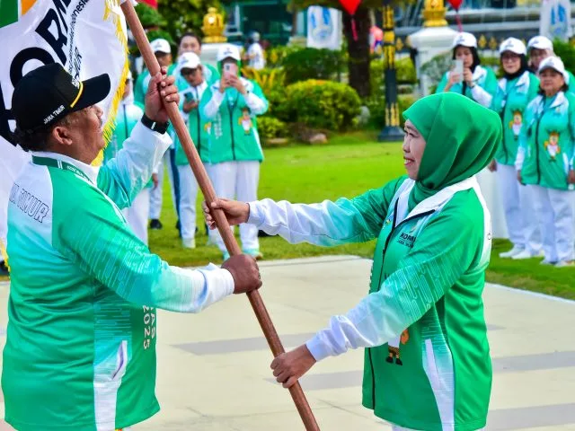 SURABAYA-KEMPALAN: Gubernur Jawa Timur Khofifah Indar Parawansa menyampaikan optimisme bahwa kontingen Jawa Timur akan meraih Juara Umum pada ajang Festival Olahraga Rekreasi Masyarakat Nasional (FORNAS) VIII Tahun 2025 yang digelar di Provinsi Nusa Tenggara Barat (NTB).