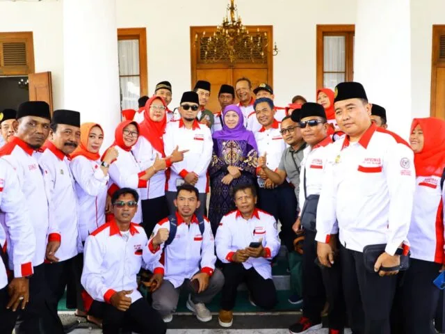 SURABAYA-KEMPALAN: Gubernur Jawa Timur Khofifah Indar Parawansa menerima kunjungan 112 pengurus Asosiasi Badan Permusyawaratan Desa Nasional (ABPEDNAS) dari 20 Dewan Pimpinan Cabang (DPC) se-Jawa Timur di Halaman Gedung Negara Grahadi, Surabaya, Selasa (9/9).