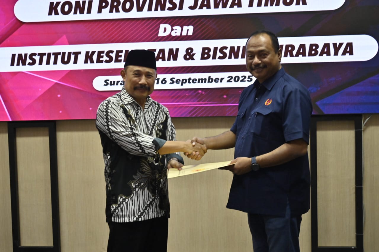 SURABAYA-KEMPALAN : Komite Olahraga Nasional Indonesia (KONI) Jawa Timur terus menunjukkan komitmennya terhadap masa depan atlet berprestasi. Salah satu langkah strategis yang ditempuh adalah menjalin kerja sama dengan Institut Kesehatan dan Bisnis Surabaya (IKBIS) dalam bidang pendidikan untuk atlet Jawa Timur.