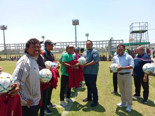Pemberian apparel dan equipment dalam bentuk kaos dan bola diserahkan secara simbolik oleh Kadisbudporapar Kota Surabaya Hidayat Syah dan Bidang Pembinaan Usia Dini Asprov PSSI Jatim Raja Siahaan.