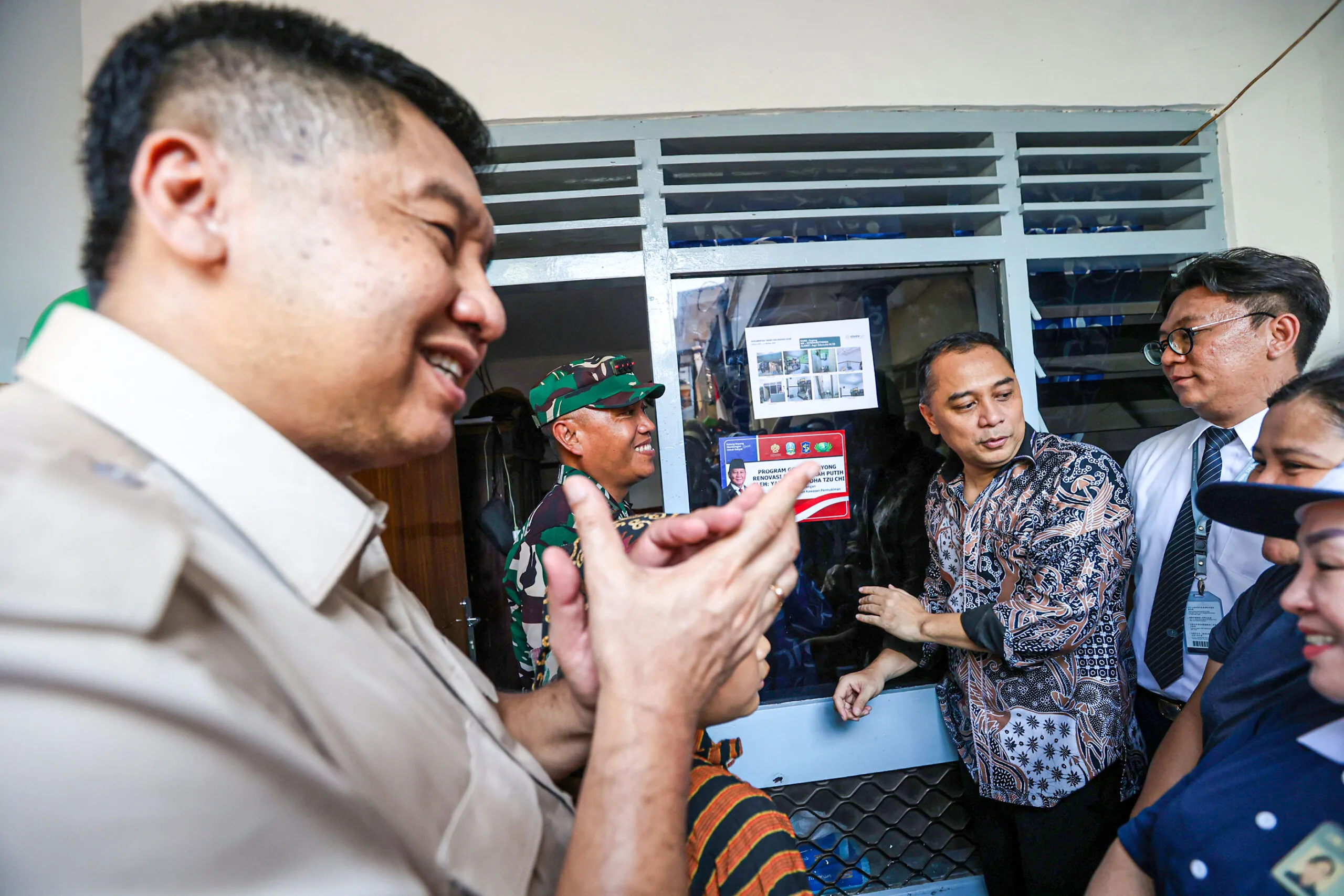 SURABAYA-KEMPALAN: Menteri Perumahan dan Kawasan Permukiman (PKP) Republik Indonesia (RI) Maruarar Sirait didampingi Wali Kota Surabaya Eri Cahyadi menghadiri Peluncuran Program Gotong Royong Renovasi Rumah Merah Putih yang diselenggarakan Yayasan Buddha Tzu Chi Indonesia di Jagir Sidomukti, Surabaya, Kamis (16/10).