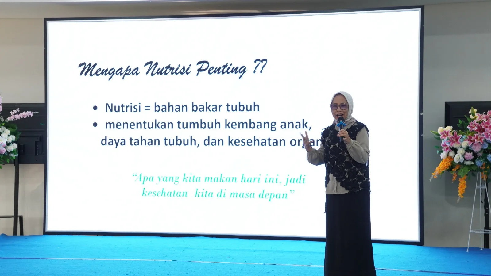Prof. Dr. Dian Mulawarmanti, drg., MS., PBO., MCE., pakar nutrisi rongga mulut dan gigi dari Fakultas Kedokteran Gigi Universitas Hang Tuah, yang membawakan materi tentang pentingnya nutrisi dan perilaku hidup sehat dalam menjaga kesehatan gigi, mulut, serta tubuh secara menyeluruh.