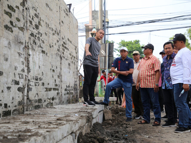 SURABAYA-KEMPALAN: Pemkot Surabaya terus melakukan percepatan pembangunan saluran hingga rumah pompa. Percepatan pembangunan saluran dan rumah pompa itu ditargetkan tuntas pada November 2025.