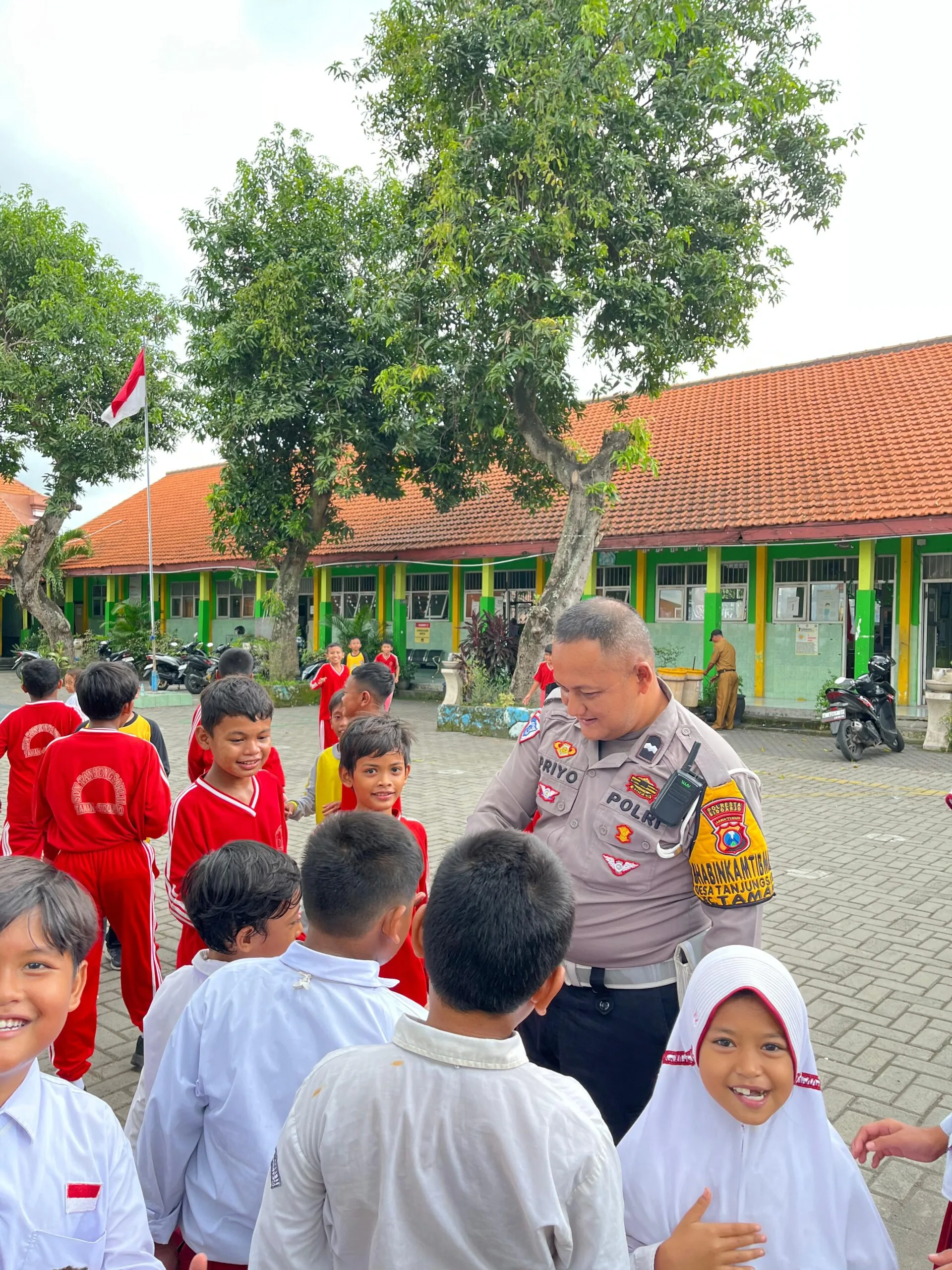 Bhabinkamtibmas Polsek Taman Desa Tanjungsari, Aipda Dwi Priyo, melaksanakan kegiatan sosialisasi dan pemberian himbauan kepada guru dan pelajar di SDN 2 Tanjungsari, Senin (12/01/2026).