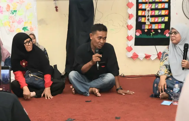 Salah satu guru PG–RA–TK Nurul Huda , Ibu Erlina (27 tahun), menyampaikan apresiasi atas kunjungan edukatif Satlantas Polresta Sidoarjo.